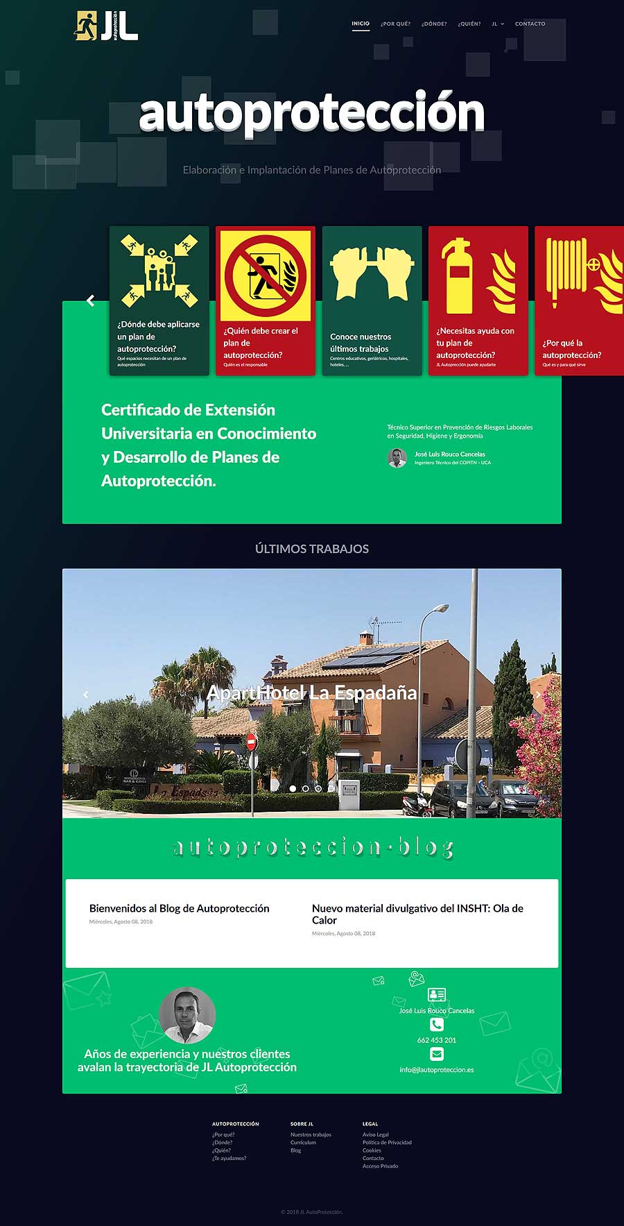 Sitio web corporativo de JL Autoprotección, empresa dedicada a la elaboración e Implantación de Planes de Autoprotección